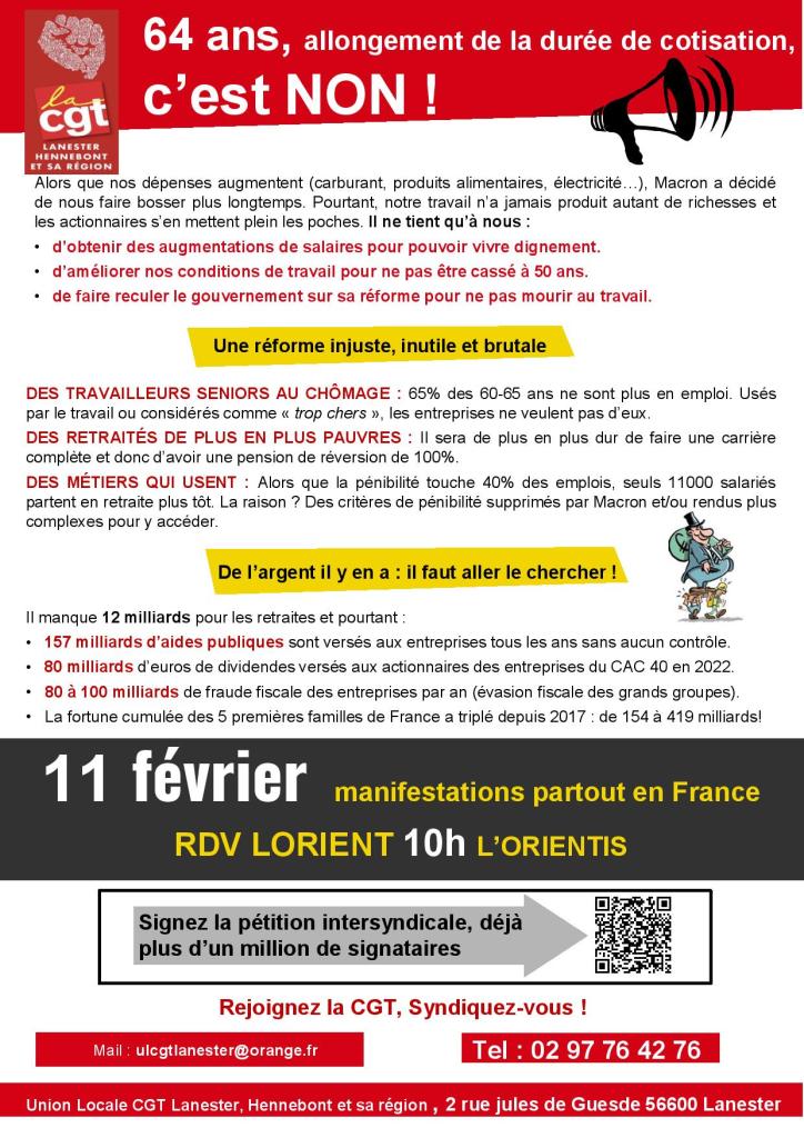 L’intersyndicale appelle toute la population à manifester encore plus massivement le samedi 11 février sur l’ensemble du territoire pour dire non à cette réforme.